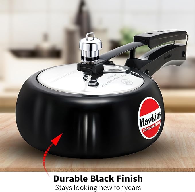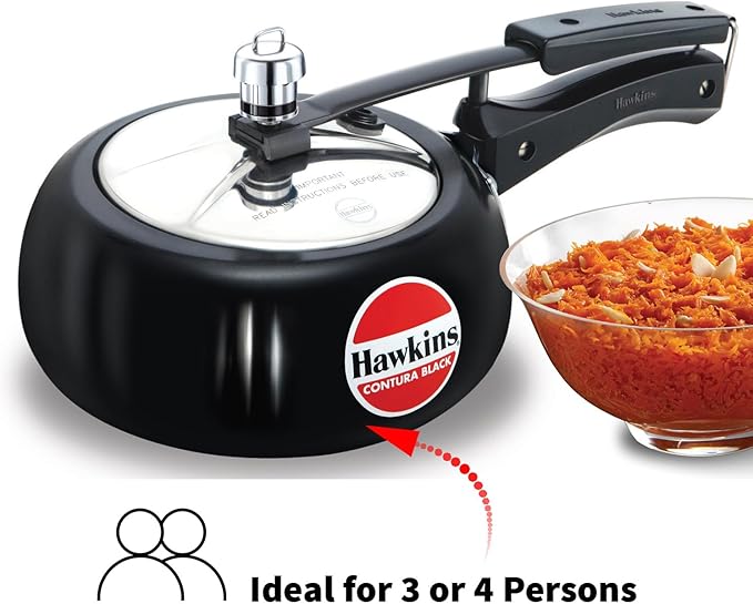 Hawkins 2 Litre Contura Black Pressure Cooker, Hard Anodised Inner Lid Cooker, Handi Cooker, Small Cooker, Black (CB20)