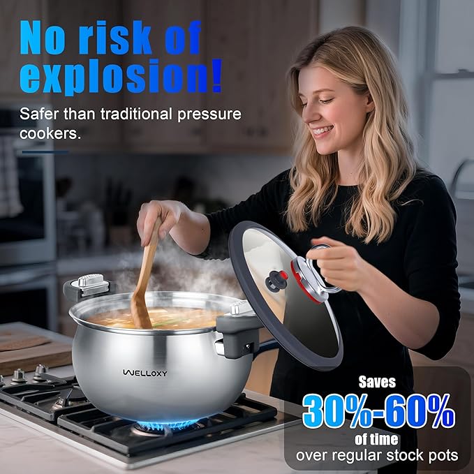 - 4. Lock Nutrients & Flavor: Slow-cooked taste in half the time. The stovetop power of a dutch oven meets the speed of a pressure cooker! Tight sealing helps retain nutrient and prevents oil splatter — enjoy richer taste, cleaner kitchen!