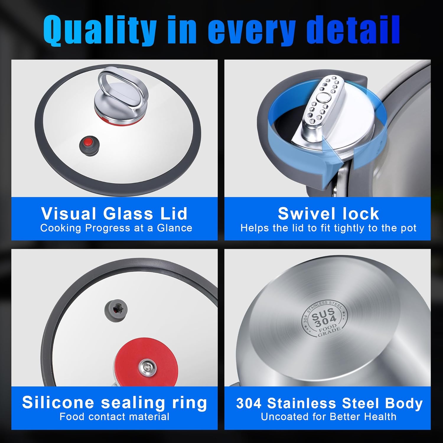 - 3. 100% Food-Grade & Eco-Friendly Build: Premium 3-Ply 304 Stainless Steel ensures lightning-fast and even heat distribution for perfect cooking. Enjoy complete peace of mind with a totally non-toxic, PFOA-free, and coating-free interior that’s easy to clean and incredibly durable for decades of use.